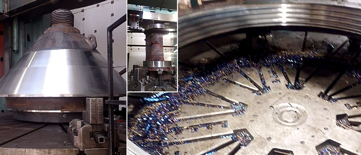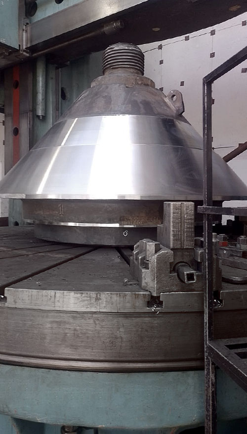 Head de chancadora cónica para su posterior mecanizado en las zonas críticas tales como upper, lower, bole, parte cónica según medidas requeridas.